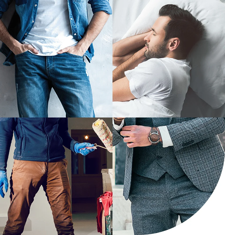 Only those who wear PHALLOSAN forte regularly will achieve successful results. That is why it is important to be discreet in everyday use. Whether under comfortable trousers in the home office, under a suit, jeans or work trousers. PHALLOSAN forte works unnoticed on your optimisation.